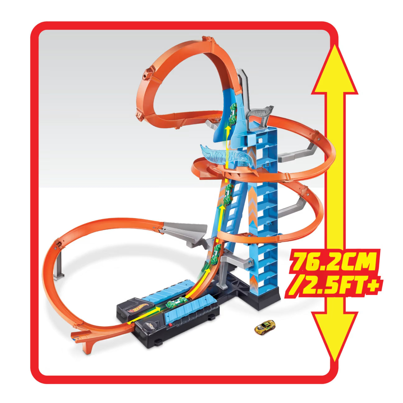- Massive 32-inch (83 cm) tower with parking space for 20+ Hot Wheels® cars.