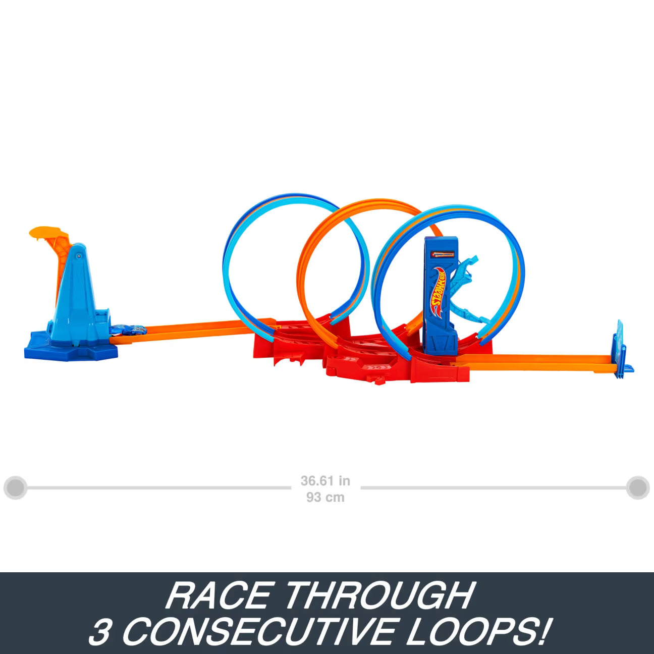 - Triple-loop stunt action with a slam launcher and loop kicker for maximum thrills.